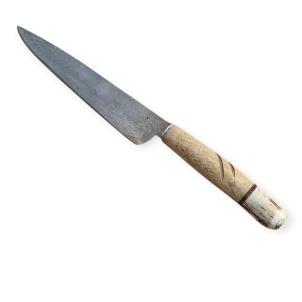Perfecto para usar en la cocina o en la parrilla, este cuchillo combina funcionalidad y diseño artesanal. Ideal para acompañar tus tablas para cortar y tablas de madera al preparar carnes, verduras o panes.